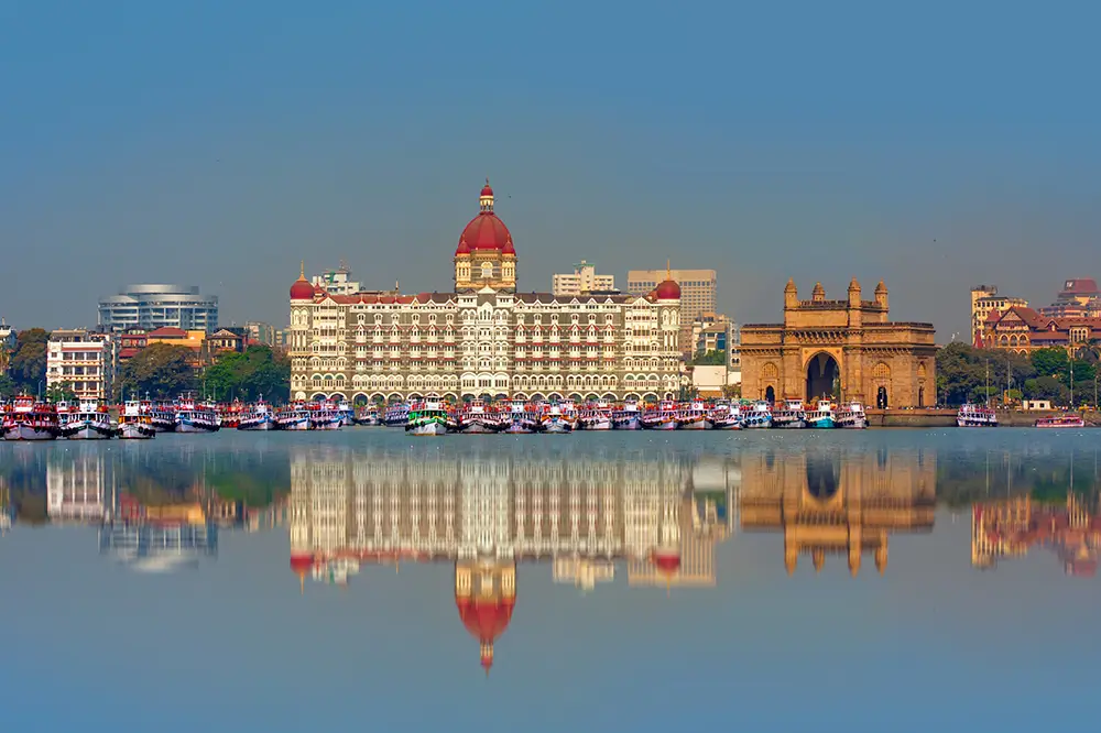 The Gateway of India: An iconic arch monument overlooking the Mumbai harbour stands as a historical landmark.